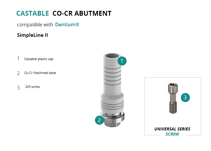 Castable Abutment with Co-Cr Base compatible with Dentium® SimpleLine II