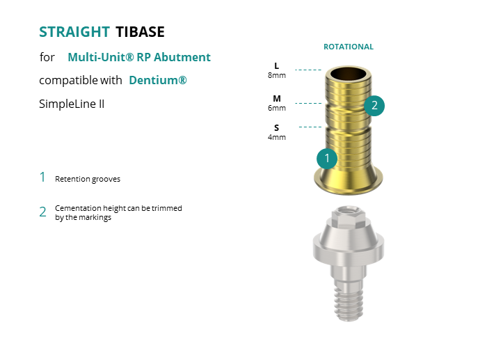 Titanium Straight Base for Multi-Unit® RP Abutment compatible with Dentium® SimpleLine II