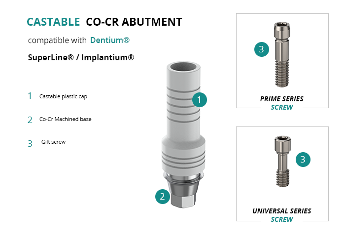 Castable Abutment with Co-Cr Base compatible with Dentium® SuperLine® / Implantium®