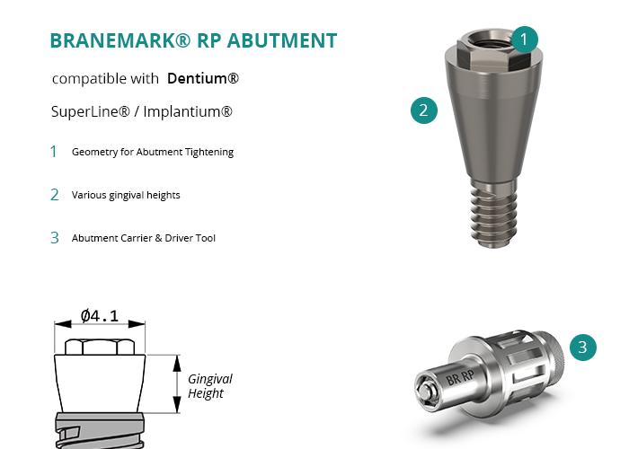Branemark® RP Abutment compatible with Dentium® SuperLine® / Implantium®