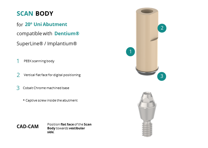 Scan Body for 20� Uni Abutment compatible with Dentium® SuperLine® / Implantium®