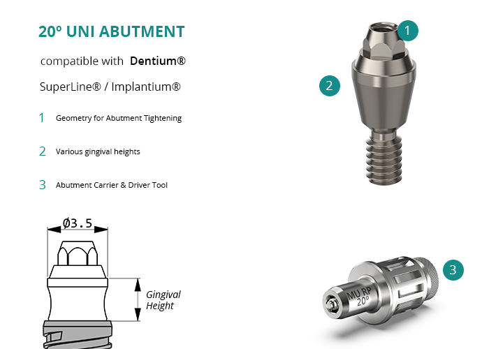 20º Uni Abutment compatible with Dentium® SuperLine® / Implantium®