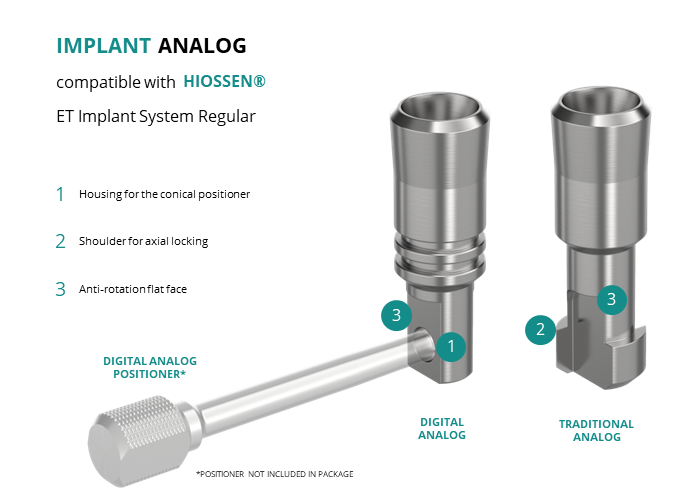 - Digital Analog: for models made of resin through 3D printing, locking is achieved using a slightly conical positioner, ensuring axial positioning.