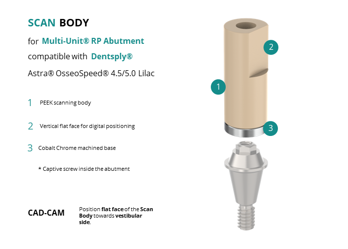 • CAD-CAM: Position flat face of the Scan Body towards vestibular side.