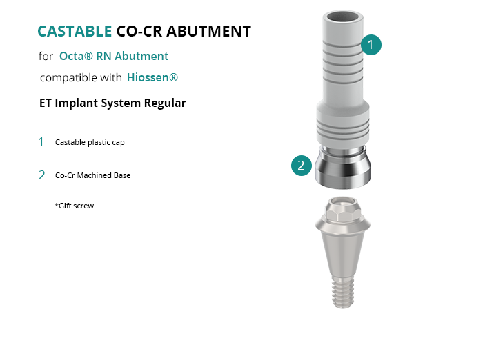 Castable Abutment with Co-Cr Base for Octa® RN Abutment compatible with Hiossen® ET Implant System Regular