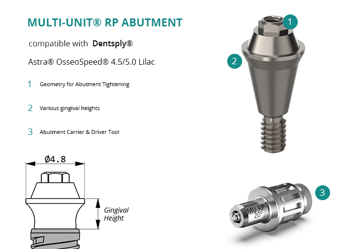 Multi-Unit® RP Abutment compatible with Dentsply® Astra® OsseoSpeed® 4.5/5.0 Lilac
