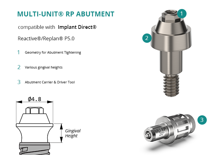 Multi-Unit® RP Abutment compatible with Implant Direct® Reactive®/Replan® P5.0