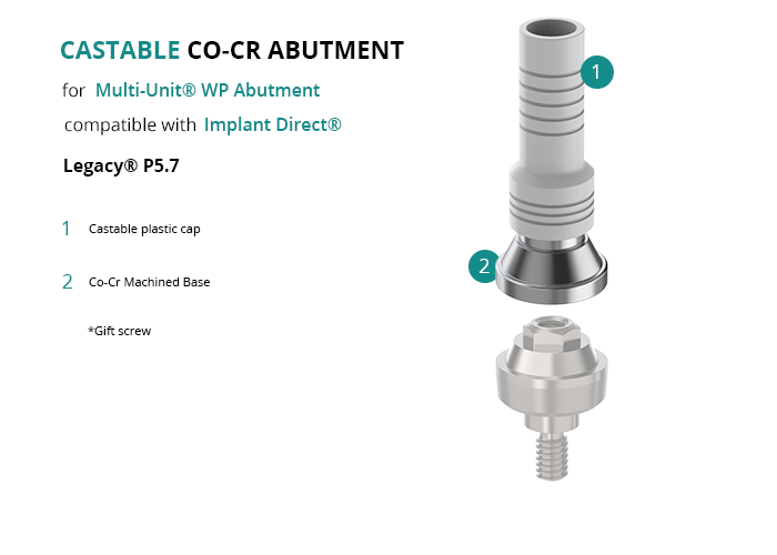 Castable Abutment with Co-Cr Base for Multi-Unit® WP Abutment compatible with Implant Direct® Legacy® P5.7