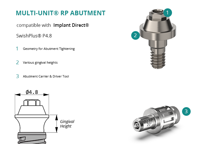 Multi-Unit® RP Abutment compatible with Implant Direct® SwishPlus® P4.8