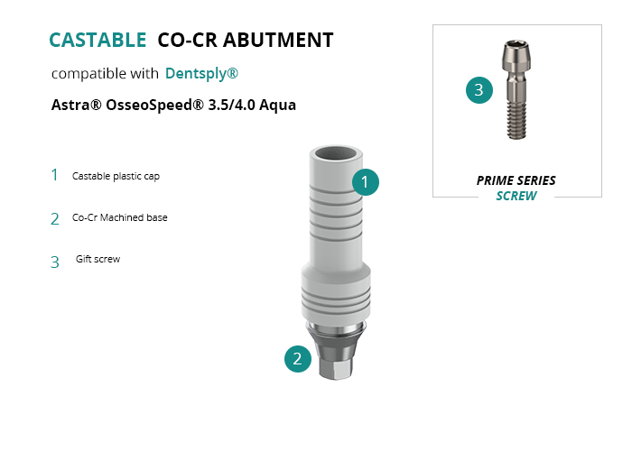 Castable Abutment with Co-Cr Base compatible with Dentsply® Astra® OsseoSpeed® 3.5/4.0 Aqua