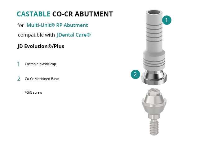 Castable Abutment with Co-Cr Base for Multi-Unit® RP Abutment compatible with JDental Care® JD Evolution®/Plus