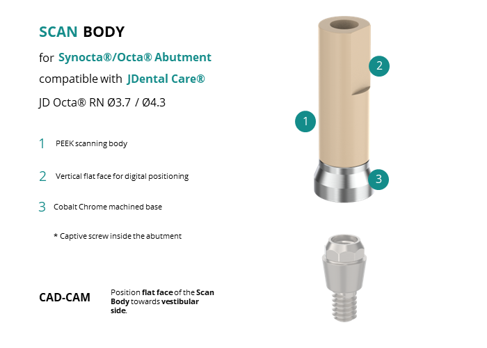 Scan Body for Synocta®/Octa® Abutment compatible with JDental Care® JD Octa® RN Ø3.7 / Ø4.3