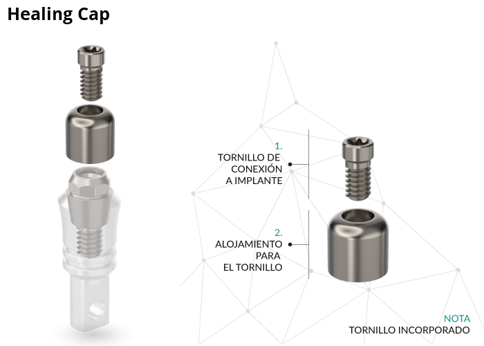 The Healing Cap has a diameter of 4.8mm to ensure a perfect fit to the Synocta® Abutment, and it is equipped with a housing for the fixation screw with the implant.