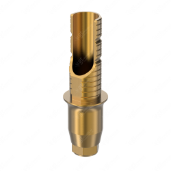 GT-Medical's Angled Ti-Base are compatible with Internal Hex - TS System Regular implants from Osstem®, ensuring a stable and long-lasting connection between the implant and the prosthesis, while also allowing angulations to be corrected up to 25 degrees. They are made entirely of Titanium Grade 5 with a yellow anodizing for a more aesthetic finish. They have a cementation trunk that can be cut to various heights with an open channel to allow angulation, 3 flat faces to perform the anti-rotating function and a gingival body of various heights, depending on the type of connection.