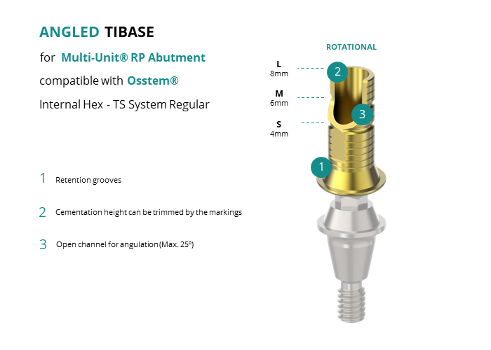 Angled Titanium Base for Multi-Unit® RP Abutment compatible with Osstem® Internal Hex - TS System Regular