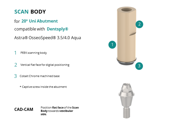 Scan Body for 20� Uni Abutment compatible with Dentsply® Astra® OsseoSpeed® 3.5/4.0 Aqua