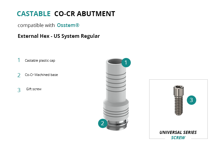 Castable Abutment with Co-Cr Base compatible with Osstem® External Hex - US System Regular