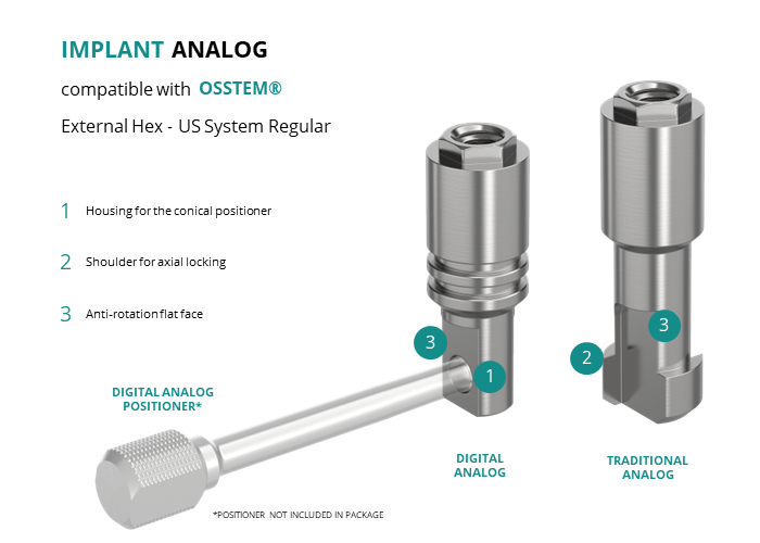 • Digital Analog: for models made of resin through 3D printing, locking is achieved using a slightly conical positioner, ensuring axial positioning.