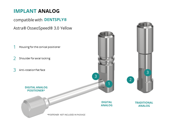 Analog compatible with Dentsply® Astra® OsseoSpeed® 3.0 Yellow