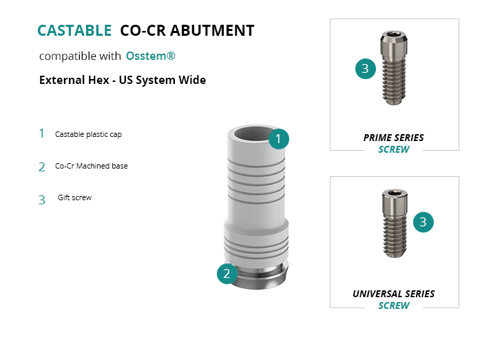 Castable Abutment with Co-Cr Base compatible with Osstem® External Hex - US System Wide