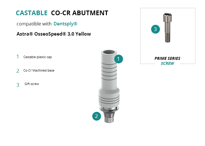 Castable Abutment with Co-Cr Base compatible with Dentsply® Astra® OsseoSpeed® 3.0 Yellow