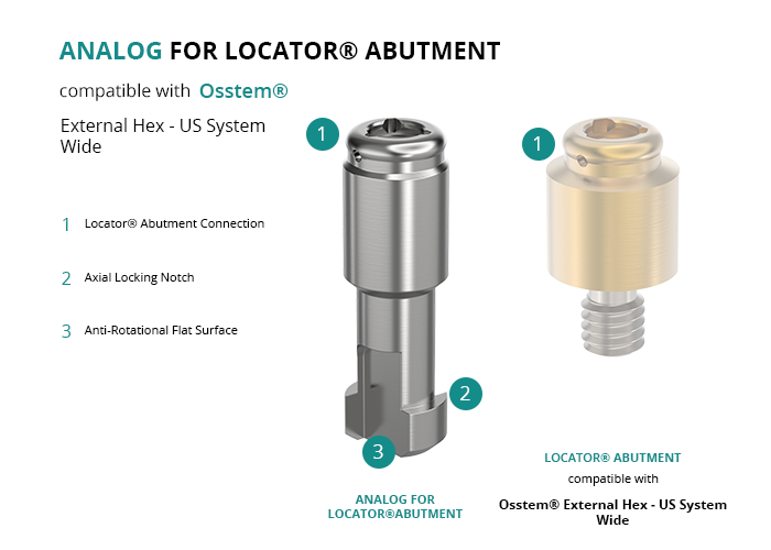 Analog for Locator® Abutment Compatible with Osstem® External Hex - US System Wide