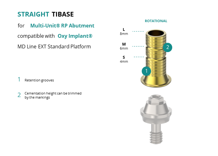 Titanium Straight Base for Multi-Unit® RP Abutment compatible with Oxy Implant® MD Line EXT Standard Platform