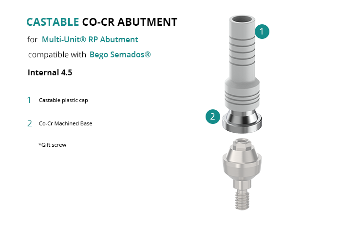 Castable Abutment with Co-Cr Base for Multi-Unit® RP Abutment compatible with Bego Semados® Internal 4.5