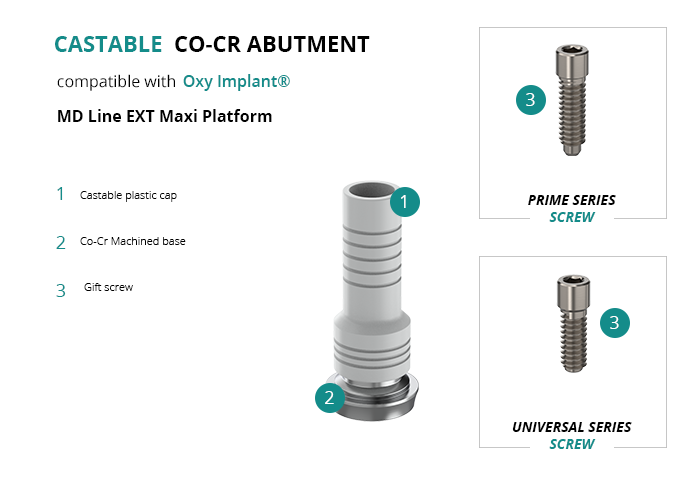 Castable Abutment with Co-Cr Base compatible with Oxy Implant® MD Line EXT Maxi Platform