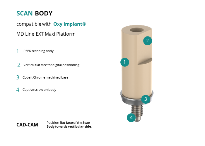 Scan Body compatible with Oxy Implant® MD Line EXT Maxi Platform