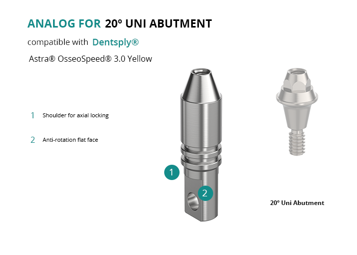 Analog for 20º Uni Abutment Compatible with Dentsply® Astra® OsseoSpeed® 3.0 Yellow