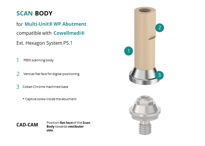 Scan Body for Multi-Unit® WP Abutment compatible with Cowellmedi® Ext. Hexagon System P5.1