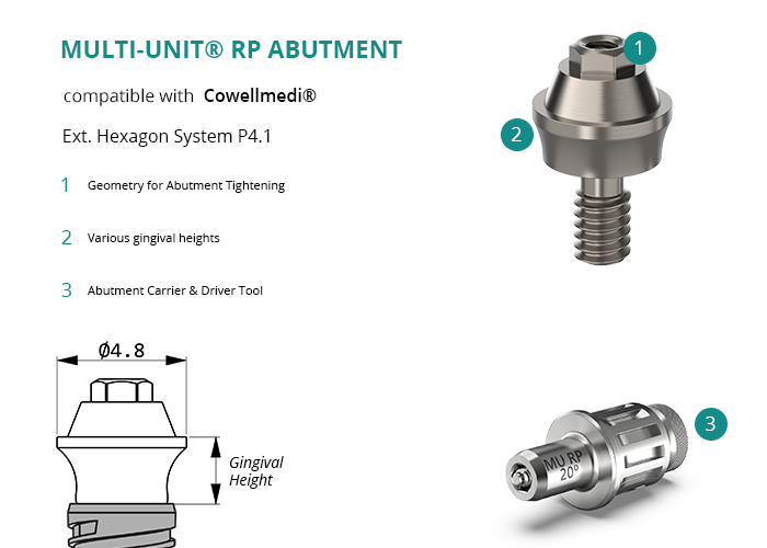 Multi-Unit® RP Abutment compatible with Cowellmedi® Ext. Hexagon System P4.1