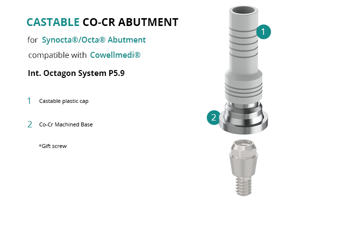 Castable Abutment with Co-Cr Base for Synocta®/Octa® Abutment compatible with Cowellmedi® Int. Octagon System P5.9