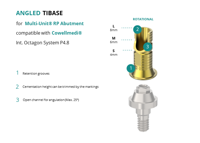 Angled Titanium Base for Multi-Unit® RP Abutment compatible with Cowellmedi® Int. Octagon System P4.8