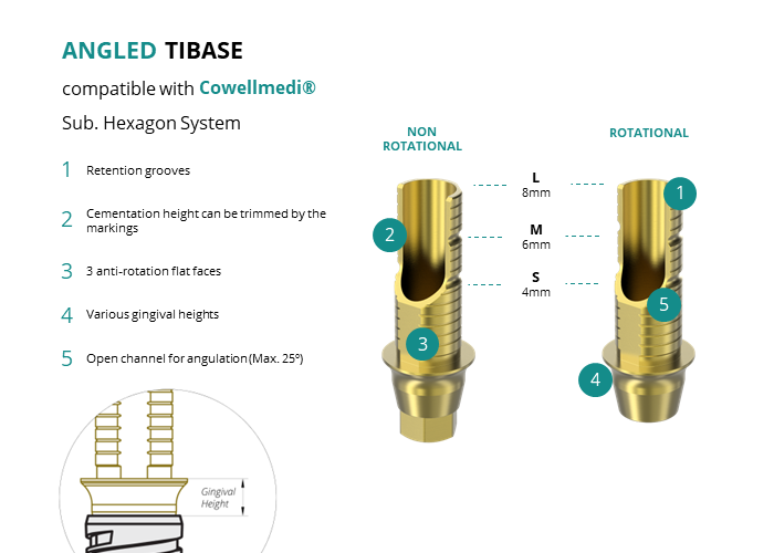 Angled Titanium Base compatible with Cowellmedi® Sub. Hexagon System