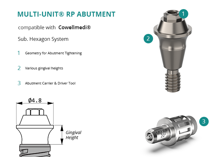 Multi-Unit® RP Abutment compatible with Cowellmedi® Sub. Hexagon System