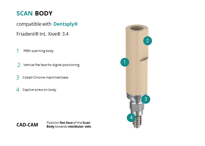 • CAD-CAM: Position flat face of the Scan Body towards vestibular side.