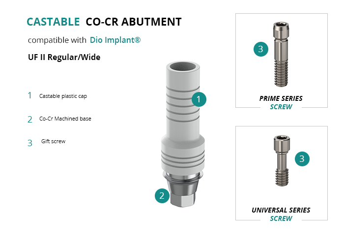Castable Abutment with Co-Cr Base compatible with Dio Implant® UF II Regular/Wide