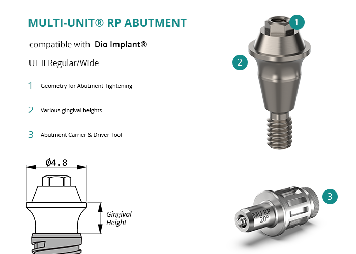 Multi-Unit® RP Abutment compatible with Dio Implant® UF II Regular/Wide