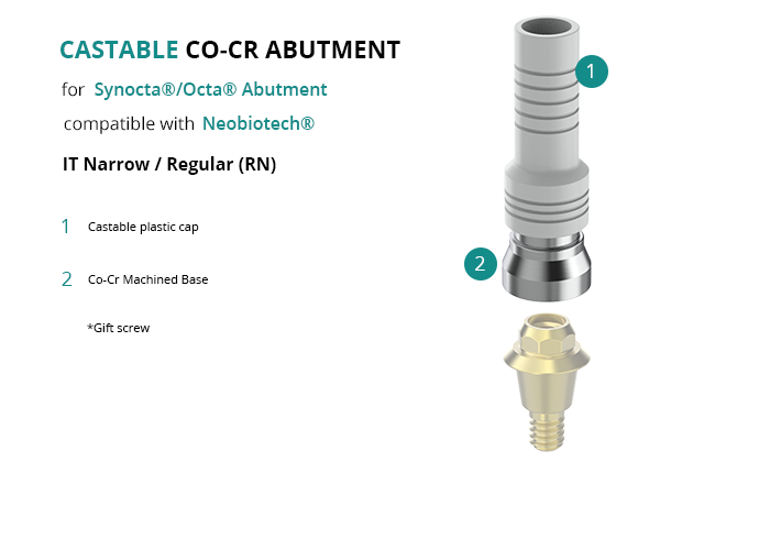 Castable Abutment with Co-Cr Base for Synocta®/Octa® Abutment compatible with Neobiotech® IT Narrow / Regular (RN)