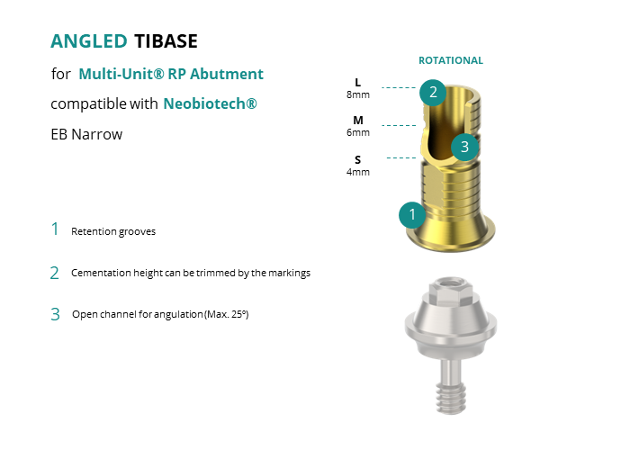 Angled Titanium Base for Multi-Unit® RP Abutment compatible with Neobiotech® EB Narrow