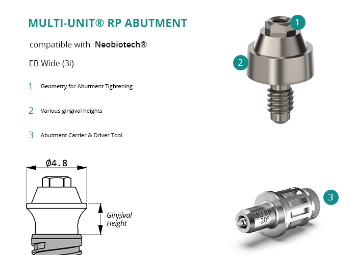 Multi-Unit® RP Abutment compatible with Neobiotech® EB Wide (3i)