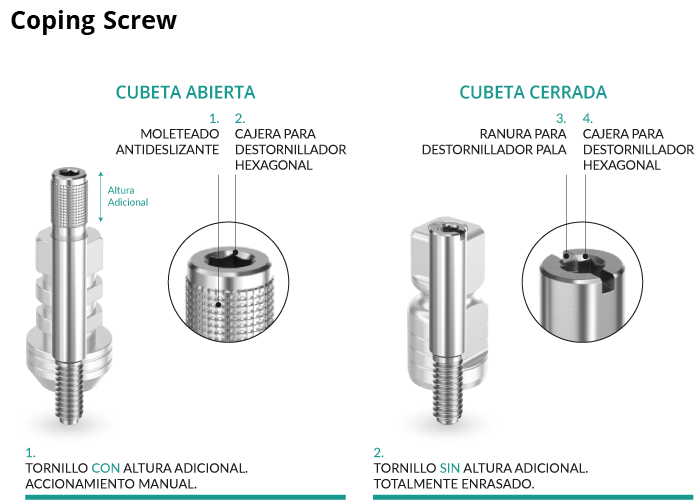 • For Open Tray, they are screws with additional height which protrude above the coping. They have an anti-slip textured top surface for easy first manual tightening (optional), and a hexagonal recess for second tightening using a screwdriver.