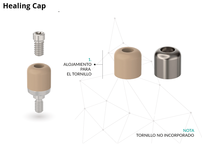 The diameter of the healing cap has a measurement adjusted to the implant or transepithelial on which it is placed.
