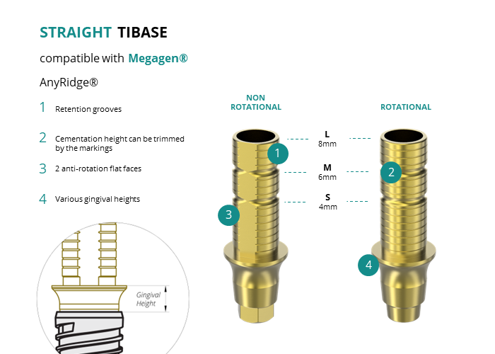 Titanium Straight Base compatible with Megagen® AnyRidge®