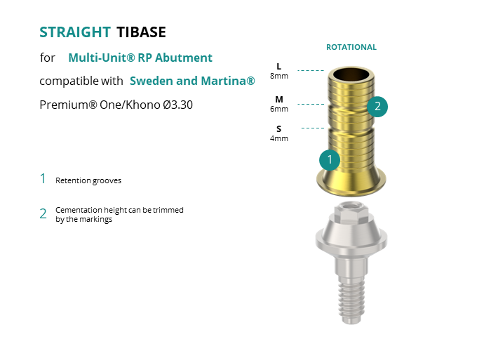 Titanium Straight Base for Multi-Unit® RP Abutment compatible with Sweden and Martina® Premium® One/Khono Ø3.30