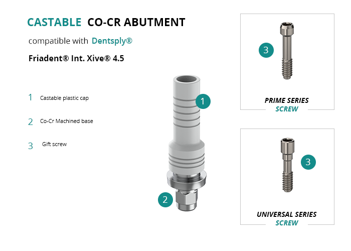 Castable Abutment with Co-Cr Base compatible with Dentsply® Friadent® Int. Xive® 4.5