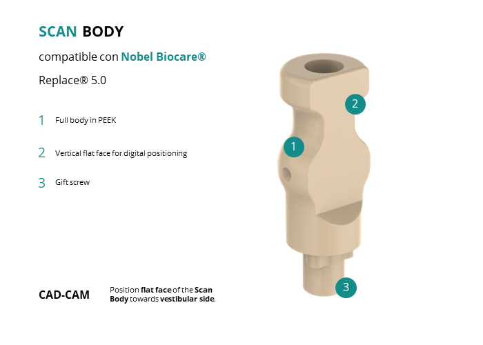- CAD-CAM: Position flat face of the Scan Body towards vestibular side.