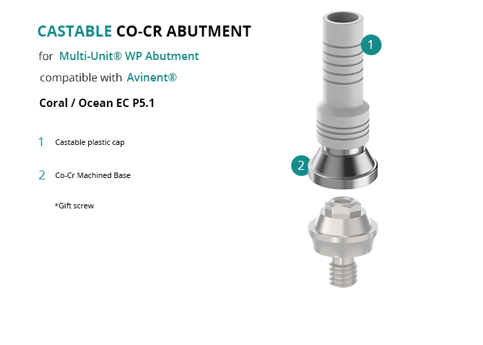 Castable Abutment with Co-Cr Base for Multi-Unit® WP Abutment compatible with Avinent® Coral / Ocean EC P5.1